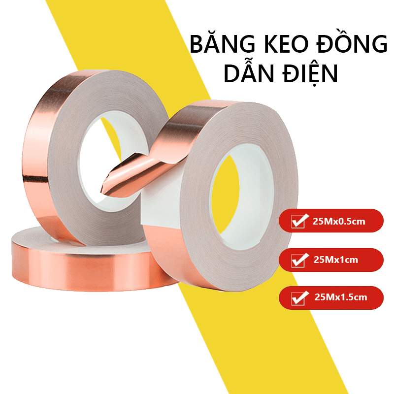 Băng keo đồng dẫn điện là một sản phẩm cần thiết cho những ai làm việc trong lĩnh vực điện tử và sửa chữa thiết bị điện. Với kích thước linh hoạt 5mm, 10mm, và 15mm, cuộn dài 25M, băng keo này không chỉ giúp kết nối điện an toàn mà còn dễ dàng sử dụng trong nhiều ứng dụng khác nhau.