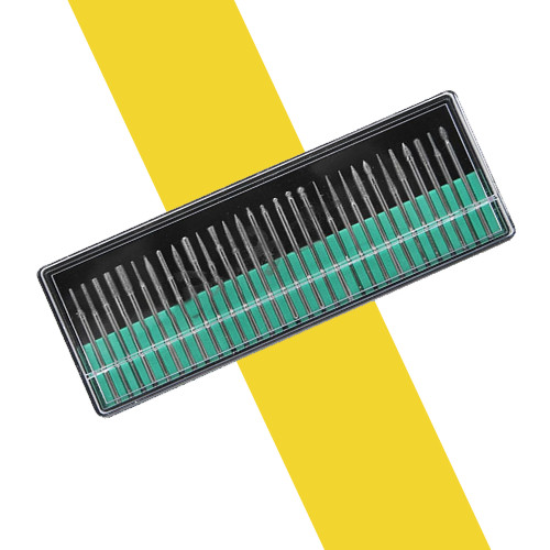 - Chất liệu làm bằng thép phủ kim cương với nhiều kích thước và loại đầu khác nhau. Bộ mũi mài giúp dễ dành mài nhẵn ở những vị trí nhỏ hay vị trí khó tiếp cận. Nhiều loại đầu khắc chữ với kích thước khác nhau cho người dùng thêm nhiều lựa chọn cho sử dụng