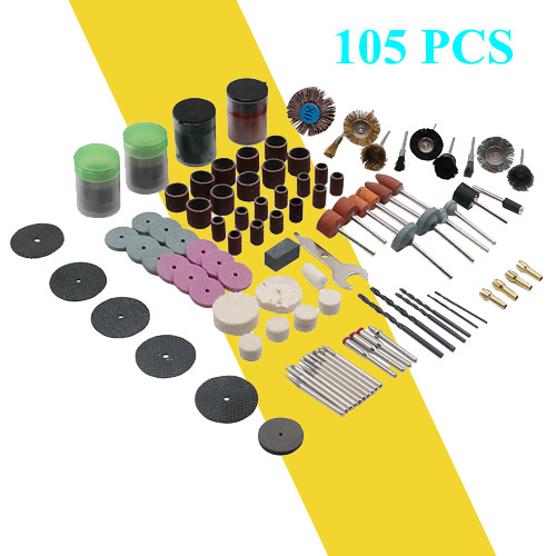 - Với 105 chi tiết của trên 10 loại công cụ khác nhau, bộ phụ kiện máy mài khắc này có thể đáp ứng mọi nhu cầu về mài, khắc đánh bóng trong quá trình gia công chế tác.