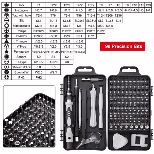 Bộ tua vít đa năng 115 PCS được sử dụng để tháo lắp tất cả các dòng điện thoại trên thị trường hiện nay.