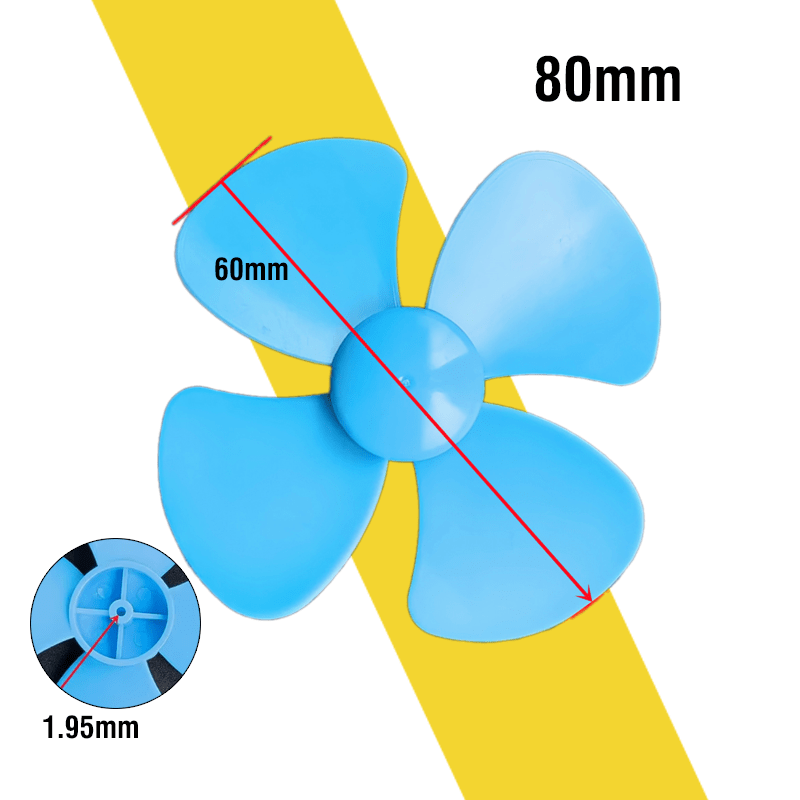 Cánh quạt mini trục 2mm cánh 60mm 80mm gắn cho motor 3V 5V làm mô hình