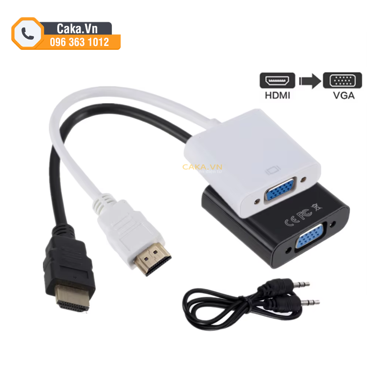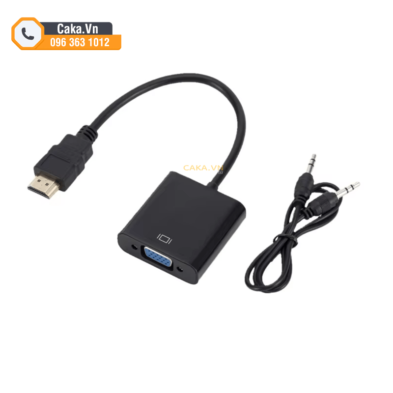 Cáp HDMI to VGA có âm thanh dùng để chuyển tín hiệu hình ảnh từ thiết bị HDMI sang màn hình VGA và hỗ trợ thêm cổng 3.5mm để xuất âm thanh.