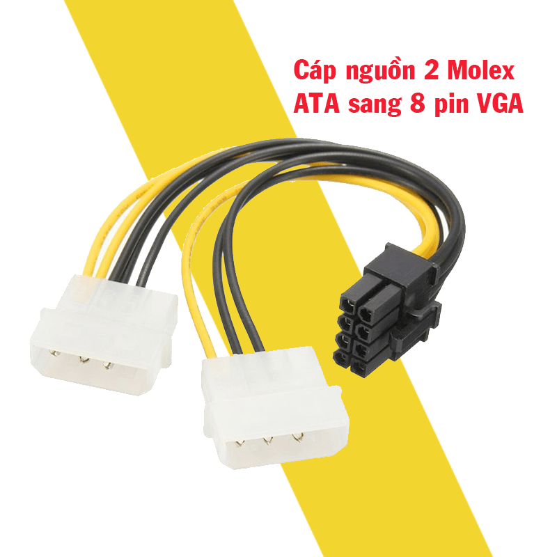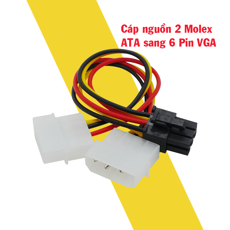 Cáp nguồn 2 Molex ATA sang 6 Pin/8 Pin là phụ kiện chuyển đổi giúp bạn cung cấp nguồn điện từ hai cổng Molex trên nguồn máy tính đến cổng 6 Pin hoặc 8 Pin của card đồ họa VGA. Đây là giải pháp lý tưởng cho những hệ thống không có đủ cổng PCI-E nhưng vẫn cần cung cấp đủ điện năng cho các card đồ họa cao cấp.