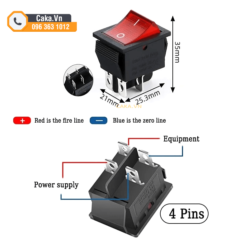 KCD4 là dòng công tắc bập bênh chuyên dùng cho các thiết bị điện công suất lớn. Phiên bản 4 chân có khả năng tách biệt đường cấp nguồn và đường đèn LED, giúp đấu nối linh hoạt hơn cho các mạch điện yêu cầu độ an toàn và chính xác cao. Công tắc có đèn LED báo sáng khi bật, hỗ trợ người dùng dễ nhận biết trạng thái hoạt động.