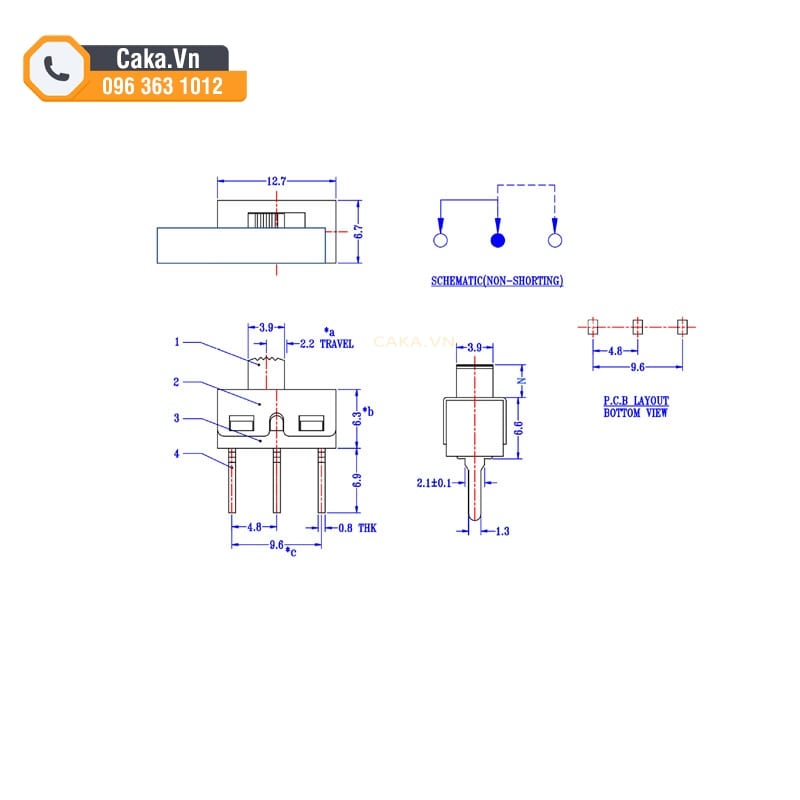 Bản Vẽ Công Tắc Gạt SS-12D10 3 Chân 2 Vị Trí 3A 250V