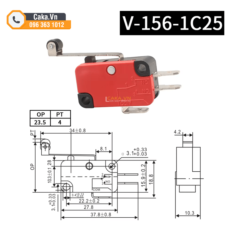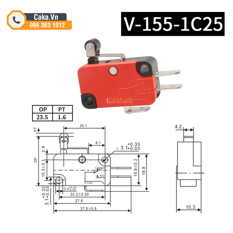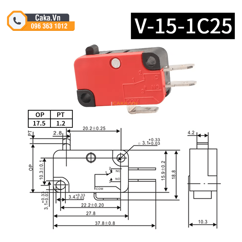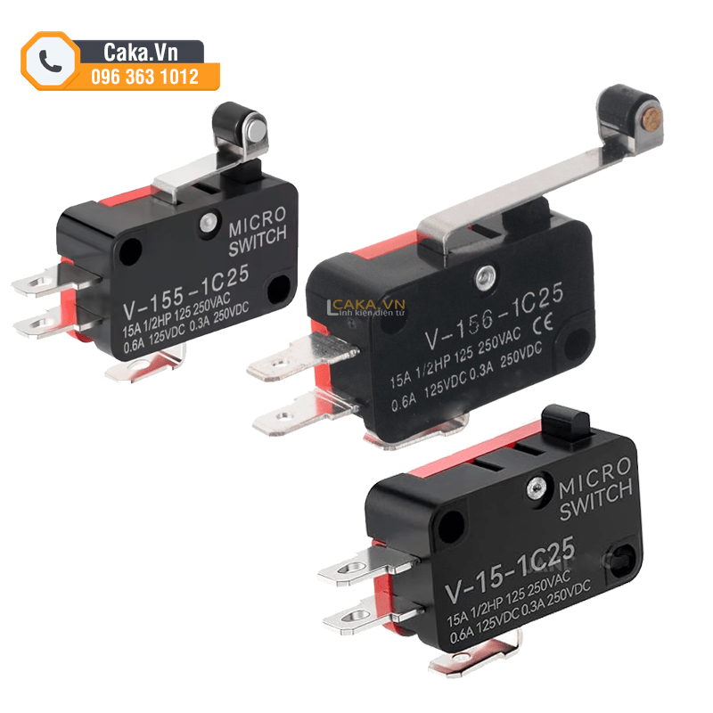 Công tắc hành trình dòng V-15-1C25 / V-155-1C25 / V-156-1C25 là loại công tắc micro (mini switch) có thiết kế nhỏ gọn, chịu dòng cao tới 15A – 250VAC, thường dùng để phát hiện vị trí giới hạn trong hệ thống máy móc tự động hóa, robot, máy in 3D, cửa điện...