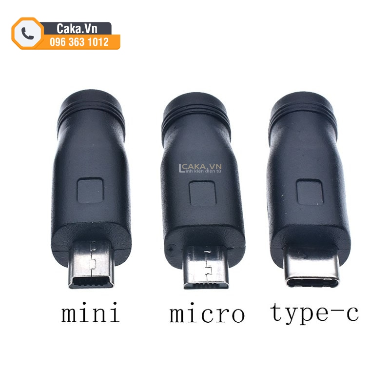 Đầu Chuyển Nguồn DC 5.5x2.1mm Sang Micro USB, Mini USB, Type-C