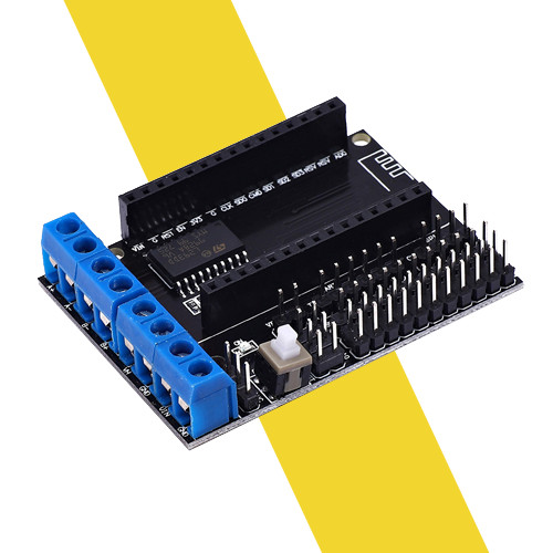 Đế ra chân ESP8266 NodeMCU Lua Motor Driver L293D được thiết kế tương thích với phiên bản NodeMCU Lua ESP8266 bao gồm phần PinOut, công tắc và Driver điều khiển động cơ L293D giúp bạn có thể dễ dàng xây dựng các ứng dụng robot điều khiển qua Wifi trên ESP8266.