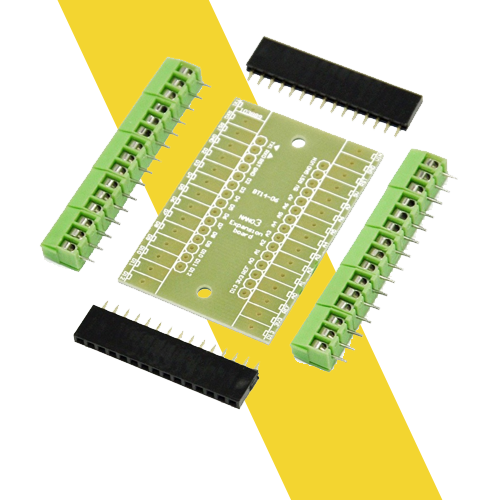 – Đế ra chân Arduino Nano được sử dụng với Arduino Nano giúp chuyển từ các chân của Arduino Nano sang kiểu chân và kích thước Arduino Uno. Mỗi chân sẽ kèm theo cặp VCC / GND giúp dễ dàng kết nối với cảm biến, RC Servo, …, Ngoài ra có các cổng UART, I2C và IC nguồn 3.3v