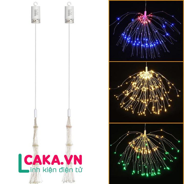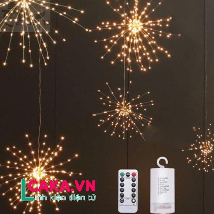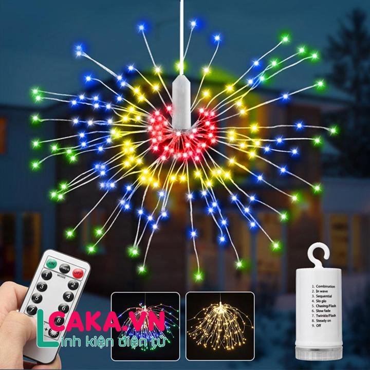 Đèn Led Pháo Hoa, Đèn trang trí Sản phẩm thông minh tiện ích gồm 40 sợi dây đồng chất lượng cao, Dây đèn LED trang trí pháo hoa tại caka.vn gồm 8 chế độ ánh sáng với hiệu ứng đẹp mắt thú vị khác nhau, có thể thay đổi bằng cách sử dụng remote điều khiển.Hộp pin được bao bọc lớp nhựa kín chất lượng cao, gồm 4 chiếc pin AA, có khả năng chống thấm nước tốt, giúp có thể hoạt động tốt ngay cả trong những ngày mưa, thời tiết khó khăn,…