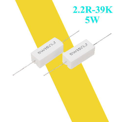 Điện trở 5W Điện trở công suất lớn kích thước lớn hơn điện trở thường nên giá trị điện trở được ghi trực tiếp trên thân của điện trở. giá trị ở đây chúng ta tùy chọn theo thông số phù hợp.