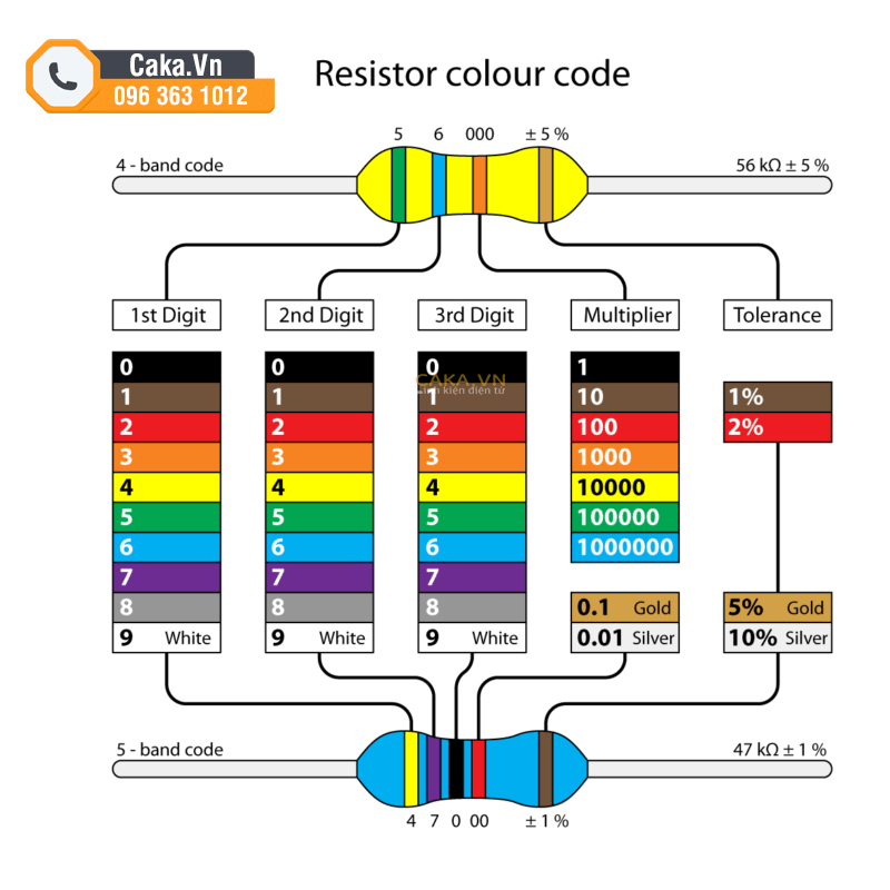 - Dễ nhận biết giá trị: Dùng mã màu 5 vòng giúp tăng độ chính xác khi đọc so với điện trở 4 vòng.