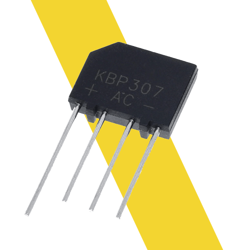 Diode Cầu 3A KBP307 là một linh kiện điện tử được cấu tạo từ 2 lớp bán dẫn tiếp xúc với nhau. Diode có 2 cực Anode và Cathode. Nó chỉ cho dòng điện đi theo 1 chiều từ Anode sang Cathode ( Chính xác là khả năng cản trở dòng điện theo chiều AK là rất nhỏ, còn KA là rất lớn). Diode Cầu 3A 700V KBP307 là diode cầu 3A có tác dụng chỉnh lưu dòng điện xoay chiều thành dòng điện một chiều.
