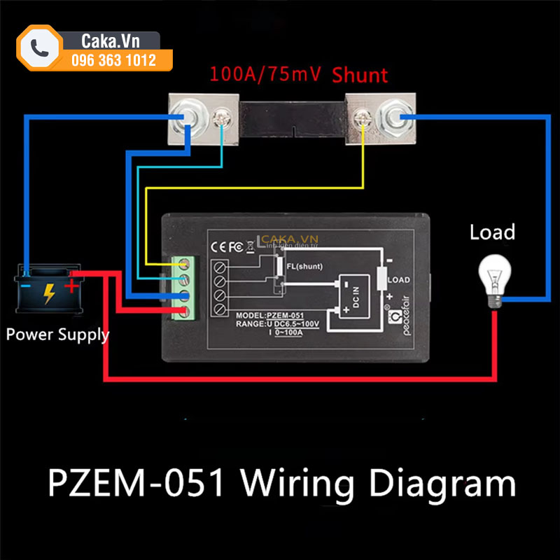 Đồng Hồ Đo Điện DC PZEM-051 100A 100V Hiển Thị Điện Áp, Dòng, Công Suất, Năng Lượng