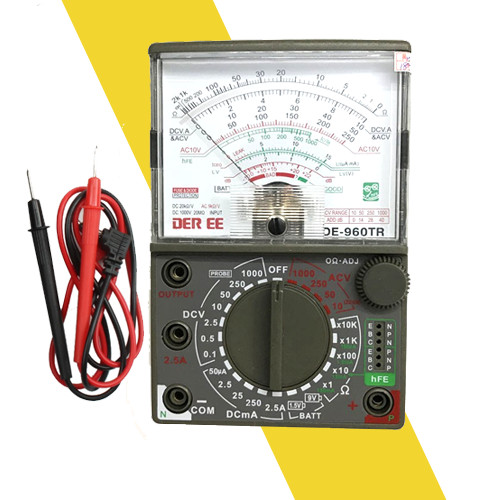 Đồng hồ đo vạn năng DEREE-960TR là đồng hồ sử dụng loại IC công nghệ cao tích hợp sẵn ADC và được bảo vệ quá tải, đo được dòng DC-AC, điện áp DC-AC, điện trở, kiểm tra transistor,...là một công cụ lý tưởng cho dân điện tử.