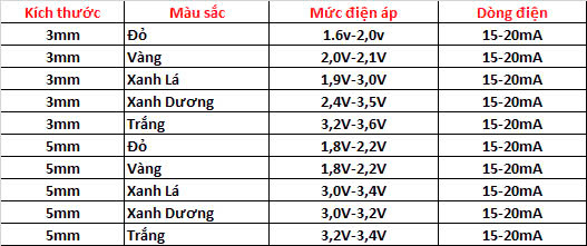 LED 3mm F3 Có Viền Nhiều Màu – Trắng Đỏ Xanh Dương Lục Vàng