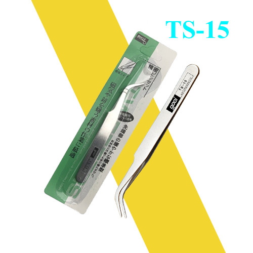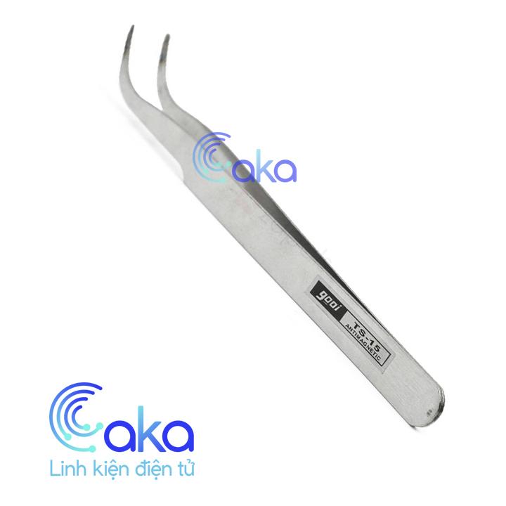 Gooi TS-15 Nhíp kẹp linh kiện điện tử Loại Cong là loại nhíp được sử dụng để gắp linh kiện điện tử, linh kiện dán, ic,...Ngoài ra nhíp gặp linh kiện còn được gọi là kẹp linh kiện còn được sử dụng nhíp làm nail, nhíp làm tranh gắn đá.....Tùy vào mục đích sử dụng của từng cá nhân và công việc.