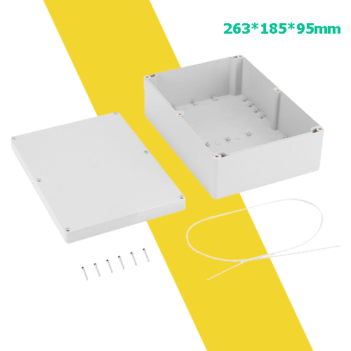 Hộp nhựa đựng mạch 263x185x95mm Vỏ làm bằng chất liệu nhựa ABS, Dùng để đựng mạch điện tử.Dùng bảo vệ mạch điện tử. Dùng trang trí cho mạch điện tử.