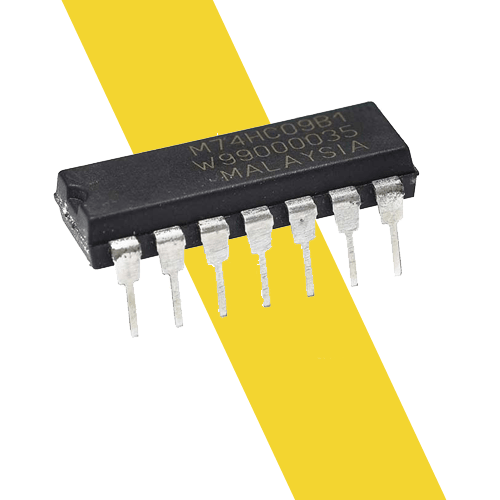74HC09 gồm 4 cổng AND CMOS tốc độ cao, ngõ ra open-drain. Vỏ DIP14. Dùng điều khiển tải, giao tiếp bus, mạch logic kéo dòng hoặc tùy biến.
