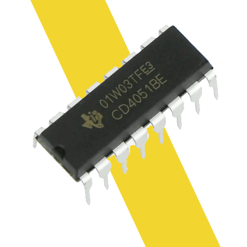 IC CD4051 là 8-kênh analog multiplexer/demultiplexer thuộc dòng CMOS logic, cho phép chọn 1 trong 8 tín hiệu đầu vào hoặc ngược lại với điều khiển bằng 3 tín hiệu địa chỉ số. IC có thể làm việc với tín hiệu analog hoặc digital, thích hợp cho các mạch mở rộng ADC, DAC, điều khiển cảm biến, hoặc thiết kế thiết bị đo lường, robot và Arduino.