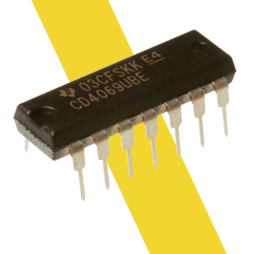 IC CD4069 là Hex Inverter thuộc họ CMOS logic, gồm 6 cổng đảo độc lập (NOT gates), tiêu thụ dòng thấp và hoạt động ổn định ở điện áp rộng từ 3V đến 15V. Ngoài chức năng đảo tín hiệu logic, CD4069 còn có thể hoạt động ở vùng tuyến tính, được dùng để khuếch đại, tạo dao động RC hoặc xung vuông trong các mạch ứng dụng với Arduino, STM32, robot, điện tử học tập.