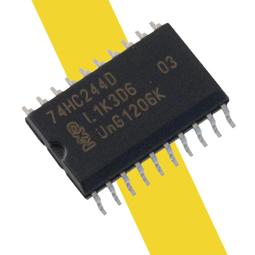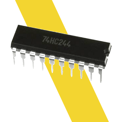 IC 74HC244 là IC đệm 1 chiều, 3 trạng thái. IC 74HC244 được sử dụng để đệm dòng điều khiển hàng nhận từ mạch xử lý trung tâm, đảm bảo dòng kích cho các transitor. IC 74HC244 có thể hoạt động được khi điện áp nguồn cấp cho IC (Vcc): -0.5V - +7.0V. IC 74HC244 có dòng đầu vào ở mỗi chân: 20mA, dòng đầu ra ở mỗi chân: 35mA.