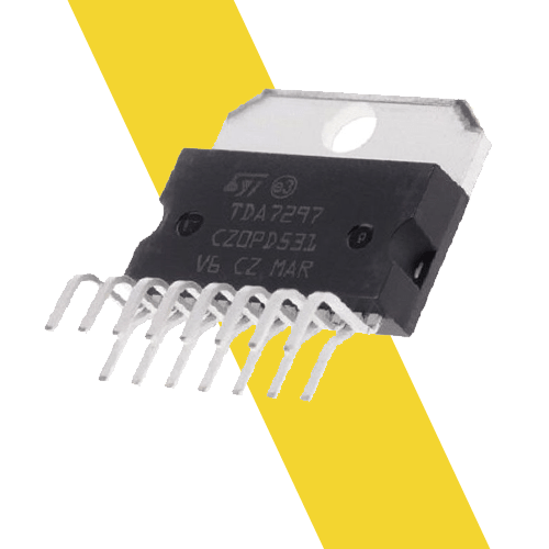 TDA7297 là IC khuếch đại âm thanh Stereo (2 kênh) công suất vừa phải, thiết kế dạng bridge amplifier (khuếch đại cầu) với công suất đầu ra lên tới 15W mỗi kênh ở loa 8Ω. IC có sẵn mạch bảo vệ quá dòng, quá nhiệt, méo thấp và dễ sử dụng, rất phù hợp cho loa vi tính, loa DIY, tivi, radio, thiết bị nghe nhạc cá nhân. Là lựa chọn phổ biến trong mạch âm thanh đơn giản, dễ lắp ráp và hiệu quả.