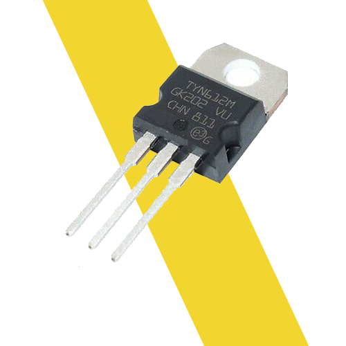 Thyristor có cấu tạo gồm 4 lớp bán dẫn ghép lại tạo thành hai Transistor mắc nối tiếp, một Transistor thuận và một Transistor ngược ( như sơ đồ tương đương ở dưới ). Thyristor có 3 cực là Anode, Cathode và Gate gọi là A-K-G, Thyristor là Diode có điều khiển , bình thường khi được phân cực thuận, Thyristor chưa dẫn điện, khi có một điện áp kích vào chân G => Thyristor dẫn cho đến khi điện áp đảo chiều hoặc cắt điện áp nguồn Thyristor mới ngưng dẫn. IC TYN612 600V/12A TO-220 có dòng thuận cực đại cao, điện áp ngược cực đại lớn, dòng rò thấp.