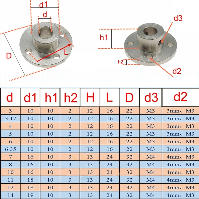 Kích thước Khớp nối mặt bích nối trục động cơ M3 M4 M5 M6 M8 M10