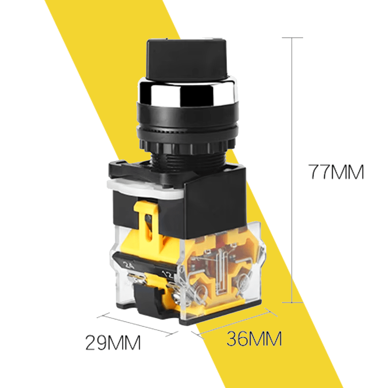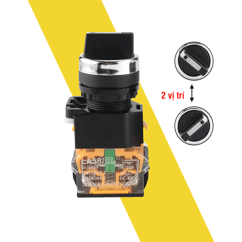Công tắc xoay LA38-11X2 là dòng công tắc cơ khí có thiết kế núm vặn thường, hoạt động theo cơ chế tự giữ (giữ nguyên trạng thái sau khi vặn). Sản phẩm có 2 vị trí lựa chọn, độ bền cao và được ứng dụng rộng rãi trong công nghiệp.