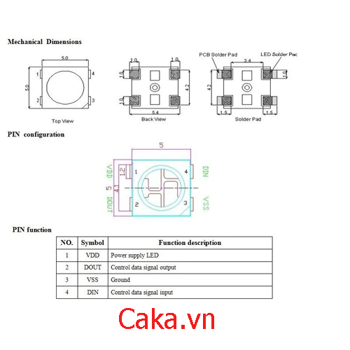 Chip LED RGB WS2812B 5050 Là một LED RGB được tích hợp bên trong cùng với một IC điều khiển WS2812B. Tạo ra một điểm ảnh đầy đủ màu sắc và có thể điều khiển được. Mỗi điểm ảnh của ba màu chính có 256 mức độ sáng (16,7 triệu màu) hiển thị đầy đủ màu sắc, với tần số quét lên đến 400Hz/s. Được sử dụng nhiều để làm dây LED, làm biển quảng cáo, LED trang trí…