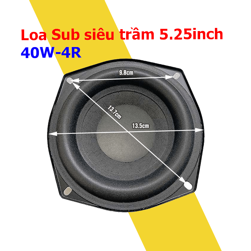 Loa SUB siêu trầm 5.25inch 50W 4R gân loa mềm và dày cho lực đánh đàn hồi cực kì chất lượng , hành trình loa dài với biên độ lớn dù cho mình test chưa đóng thùng.