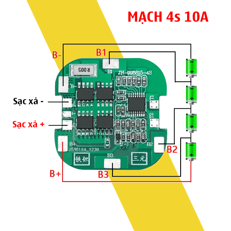 Mạch bảo vệ pin Lithium 4S 14.8V 10A có chân nhiệt độ là một mạch điều khiển được thiết kế để bảo vệ các loại pin Lithium, Li-ion hoặc pin 18650 được cấu hình 4S (4 cell nối tiếp). Loại mạch này giúp bảo vệ pin khỏi các nguy cơ tiềm ẩn như quá sạc, quá xả, quá dòng, và đặc biệt là bảo vệ quá nhiệt nhờ chân nhiệt độ đi kèm. Phù hợp với các dự án DIY như robot, xe điện mini, robot hút bụi hoặc các thiết bị di động tự chế.