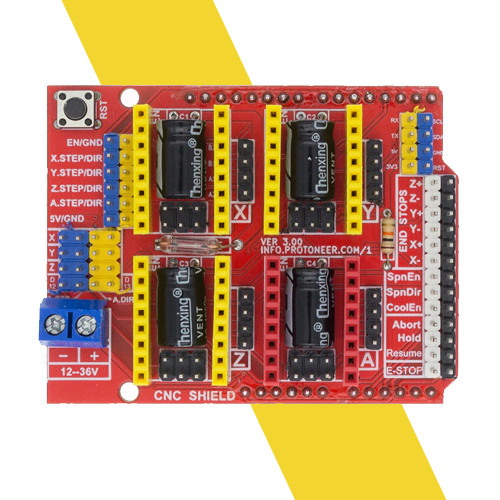 Mạch Arduino CNC Shield V3 GRBL được sử dụng kết hợp với mạch Arduino Uno và Driver động cơ bước (A4988, DRV8825,...) giúp bạn có thể dễ dàng điều khiển động cơ bước, công tắc hành trình để setup hệ thống điều khiển trong các ứng dụng CNC cỡ nhỏ 1 cách dễ dàng, mạch tương thích với phần mềm điều khiển GRBL và có cách sử dụng đơn giản, chất lượng gia công tốt, độ bền cao.