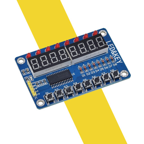 Mạch điều khiển hiển thị Led Key TM1638 được sử dụng để tạo bảng điều khiển, hiển thị trên led đơn, led 7 đoạn và phím bấm thông qua giao tiếp nối tiếp sử dụng IC TM1638.