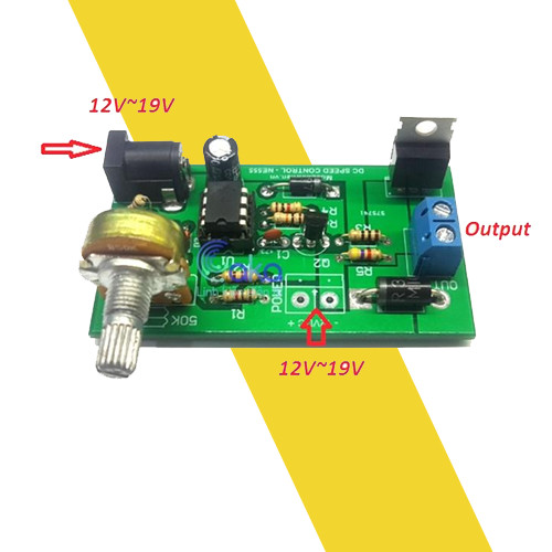 Mạch điều khiển tốc độ động cơ NE555 5A sử dụng ICNE555 để điều khiển, Mạch được sử dụng để điều chỉnh tốc độ động cơ, ánh sáng bóng đèn, quạt... với điện áp 12V.