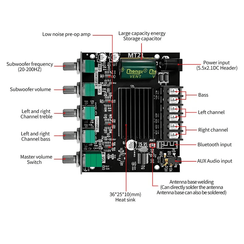 Mô-đun bộ khuếch đại công suất 2.1 kênh có thể cung cấp kết nối ổn định và nhanh chóng và có khả năng tương thích rộng.
