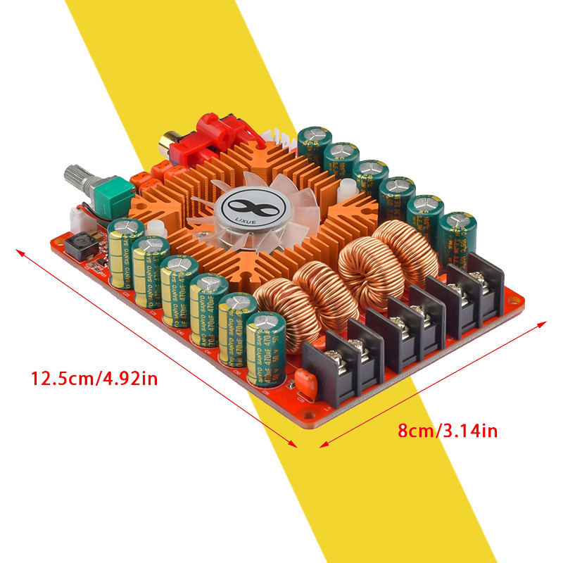 Mạch được thiết kế với 1 tấm nhôm tản nhiệt lớn màu cam rất bắt mắt, đi kèm là 1 quạt tản nhiệt với chức tăng tự động bật khi tấm nhôm tản nhiệt nóng đến nhiệt độ nhất định và tự động ngắt khi nhiệt độ tấm tản nhiệt giảm đi.