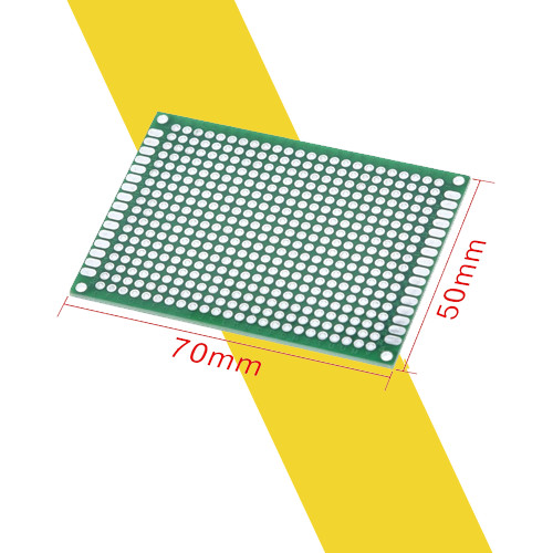 Mạch PCB đục lỗ 5x7cm loại tốt 2 mặt hay còn gọi phíp đồng đục lỗ giúp cho việc học tập có thể gắn các linh kiện điện tử trực tiếp rồi hàn gắn mà không cần dùng máy khoan cắt hay tạo các mô hình mạch điện tử, trái tim , ngôi nhà ... khi thiết kế các mô hình trở nên dễ dàng hơn. Trên board đồng đục lỗ là những lỗ tròn được đục thành những đường thẳng và các lỗ riêng biệt. Cho phép người dùng có thể tự do gắn linh kiện.