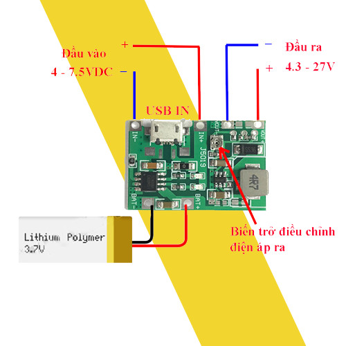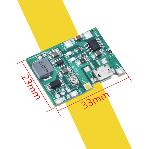 Qúy khách mua sỉ liên hệ để có mức giá ưu đãi !Mạch sạc pin Lithium 18650 tích hợp tăng áp được sử dụng trong các ứng dụng cấp nguồn bằng pin Lithium (Pin Lipo, 18650,...), mạch là sự kết hợp giữa IC sạc pin TP4056 và mạch nâng áp công suất đầu ra 7W với giải điện áp đầu ra linh hoạt 4.3~27VDC.