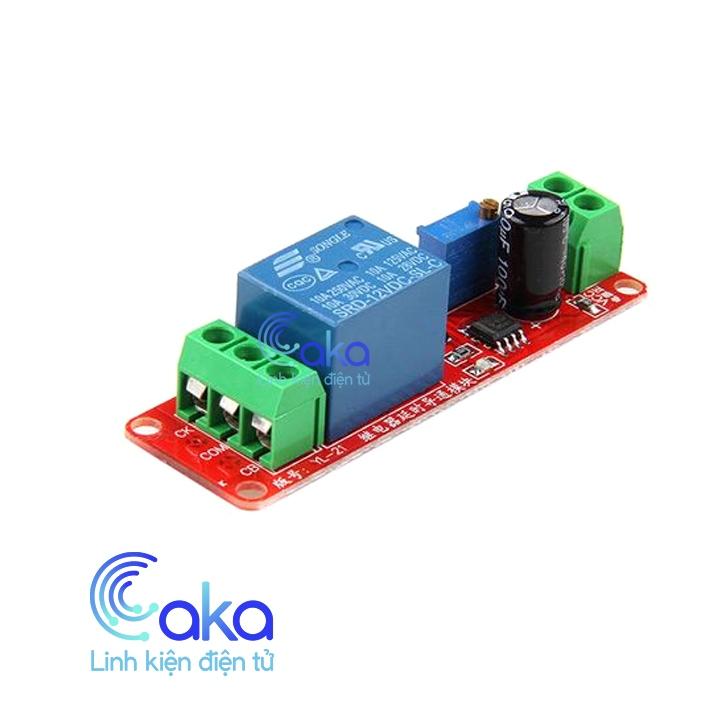 Mạch tạo thời gian trễ NE555 sử dụng IC NE555 với thời gian trễ mặc định từ 0 - 10s được điều chỉnh bằng chiết áp. Ngõ ra của mạch là 3 chân của relay: chân chung(COM), thường đóng(NC), thường mở(NO) có thể điều khiển được tối đa điện áp 250VAC.