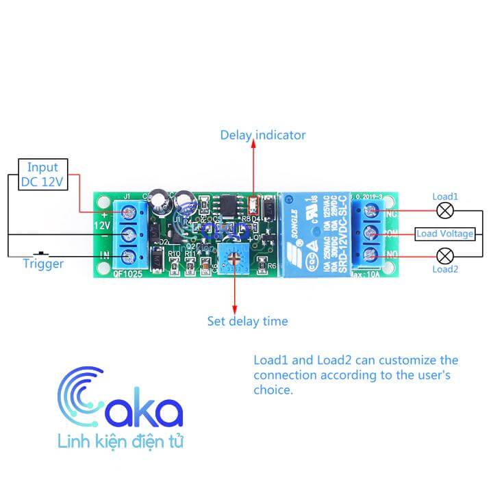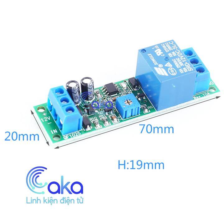 - Mạch tạo trễ 12V QF1025 Times 5s-10P Kích thước: dài 70mm * rộng 25 mm * cao 20 mm