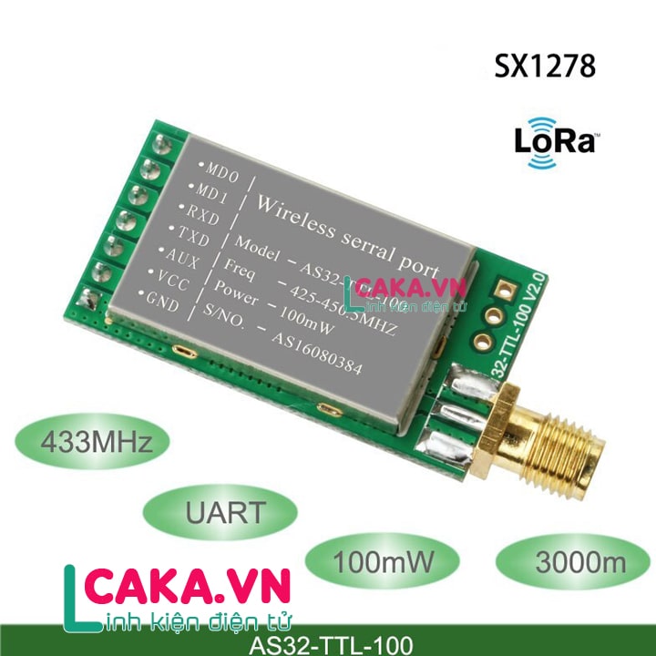 Mạch thu phát RF UART Lora SX1278 433Mhz 3000m sử dụng chip SX1278 của nhà sản xuất SEMTECH chuẩn giao tiếp LORA (Long Range), chuẩn LORA mang đến hai yếu tố quan trọng là tiết kiệm năng lượng và khoảng cách phát siêu xa ( Ultimate long range wireless solution), ngoài ra nó còn có khả năng cấu hình để tạo thành mạng nên hiện tại được phát triển và sử dụng rất nhiều trong các nghiên cứu về IoT.
