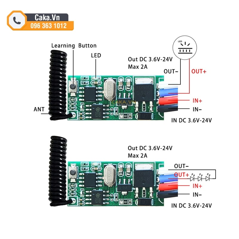 Mạch thu RF 433MHz điều khiển tắt mở LED mini 3.6V–24VDC là một giải pháp điều khiển từ xa không dây cực kỳ tiện lợi, ứng dụng trong nhiều hệ thống điện dân dụng và công nghiệp. Sản phẩm được thiết kế siêu nhỏ gọn, hoạt động ổn định trong dải điện áp rộng từ 3.6V đến 24VDC, thích hợp để điều khiển đèn LED, quạt mini, relay, hoặc các thiết bị điện công suất nhỏ.