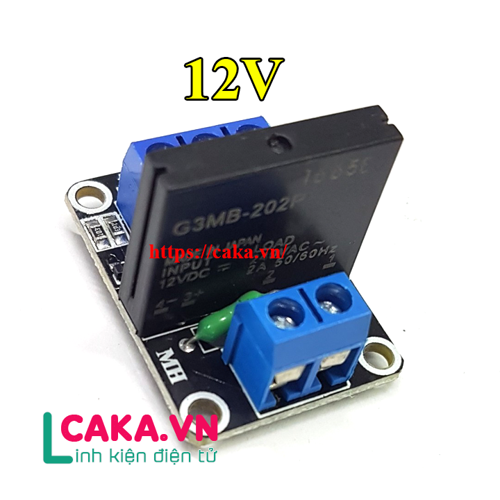 Module Relay rắn SSR được bán tại caka.vn sử dụng nguồn DC 12V để kích Relay hoạt động đóng ngắt điện thế AC với công suất tối đa 250V 2A, module này chỉ dùng để đóng ngắt nguồn AC, không sử dụng được để đóng ngắt nguồn DC, trong Relay SSR có tích hợp sẵn opto cách ly (photo triac) nên sử dụng rất an toàn.