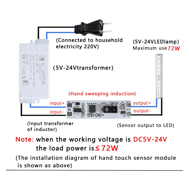 Module cảm biến lướt tay khoảng cách ngắn thông minh DC 5V-24V 12V 72W