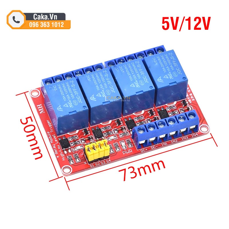 Module Relay 4 Kênh 5V/12V Opto Cách Ly Kích Hight/Low 12V