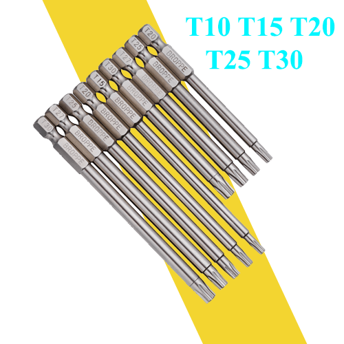 Mũi vít hoa thị có lỗ chuôi lục giác T8 T9 T10 T15 T20 T25 T30 100mm