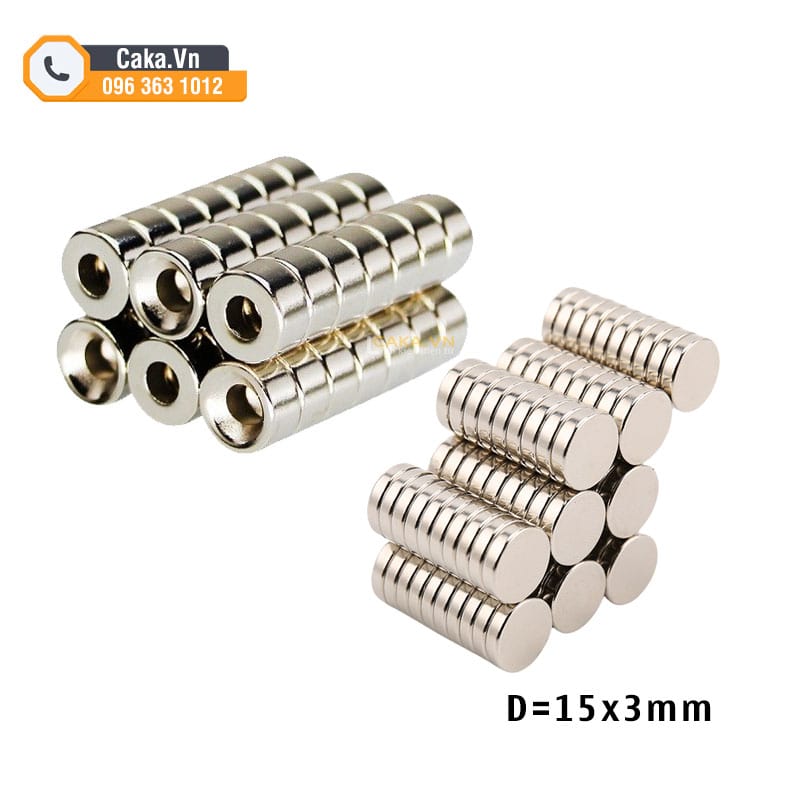 Nam châm đất hiếm tròn 15x3mm có lỗ – Neodymium siêu mạnh, mạ niken