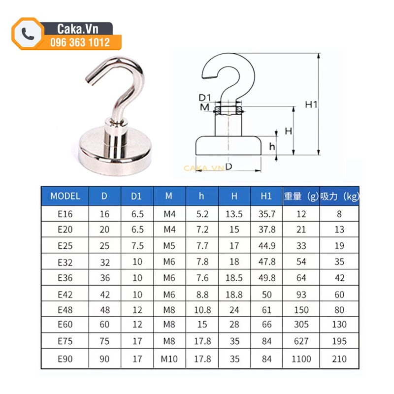 bảng kích thước nam châm móc hở treo đồ siêu khỏe